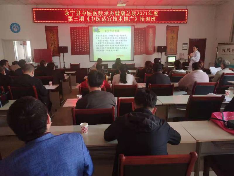 为进一步增强全县基层单位中医服务能力建设,突出中医药特色,发挥中医药优势,提高中医适宜技术在基层临床工作中的应用水平,根据《永宁县医疗健康总院2021年中医适宜技术推广培训方案和计划》,由县中医医院于2021年4月14日下午14:30承办了第三期中医适宜技术推广培训班,我县各乡镇卫生院、社区卫生服务站、村级卫生室共计31人参加了本次培训。