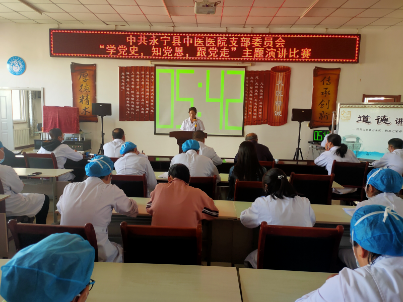 为庆祝建党100周年,重温党的光辉历程,歌颂党的伟大成就,坚定永远跟党走的信心,激励广大党员讲好中国故事,传承红色精神,5月7日下午15:00,县中医医院举办了以“学党史、知党恩、跟党走”为主题的演讲比赛,来自医院各临床科室、医技、办公室、财务等科室8名参赛选手尽展风采,从不同角度抒发了对党的热爱、对党的忠诚和对卫生健康事业的热忱与执着。
