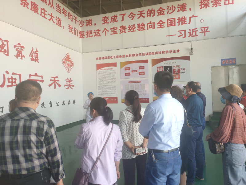 最后参观了闽宁禾美电商扶贫车间,大家看到了每个人都在为振兴家乡而努力奋斗,直播带货、打包运输、产品促销,他们走出了一条“电商+产业+扶贫”融合发展的新路子。