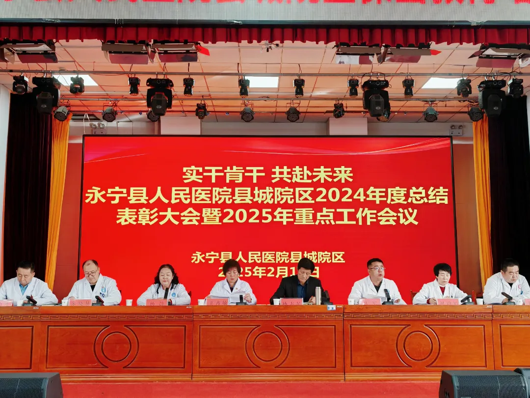 回眸耕耘路,展望新征程。2月11日,永宁县人民医院县城院区召开2024年度总结表彰大会暨2025年重点工作会议。大会对2024年度医院取得的成绩进行全面回顾总结,对工作中涌现出的先进科室和先进个人进行表扬,激励全院干部职工统一思想、务实奋进,在新起点新征程上奋力谱写医院高质量发展新篇章。永宁县卫生健康局党委书记、局长杨志星出席会议,会议由县城院区党总支副书记杨静主持,院领导班子成员及全院职工参会,共同回顾奋进足迹,擘画发展蓝图。