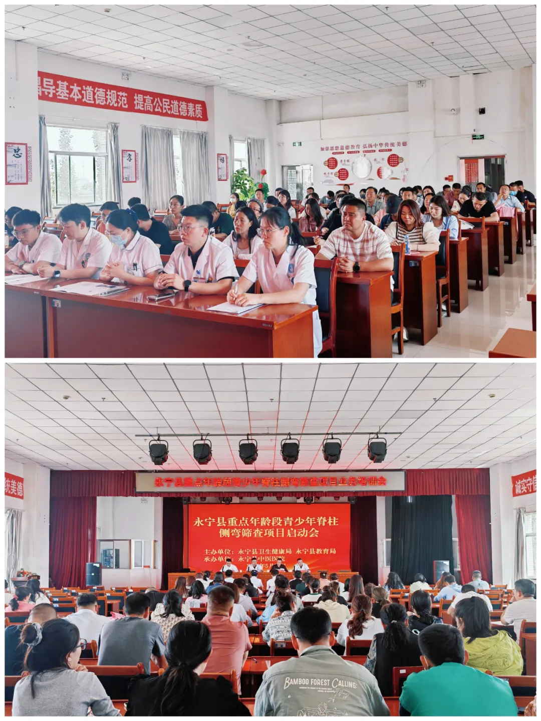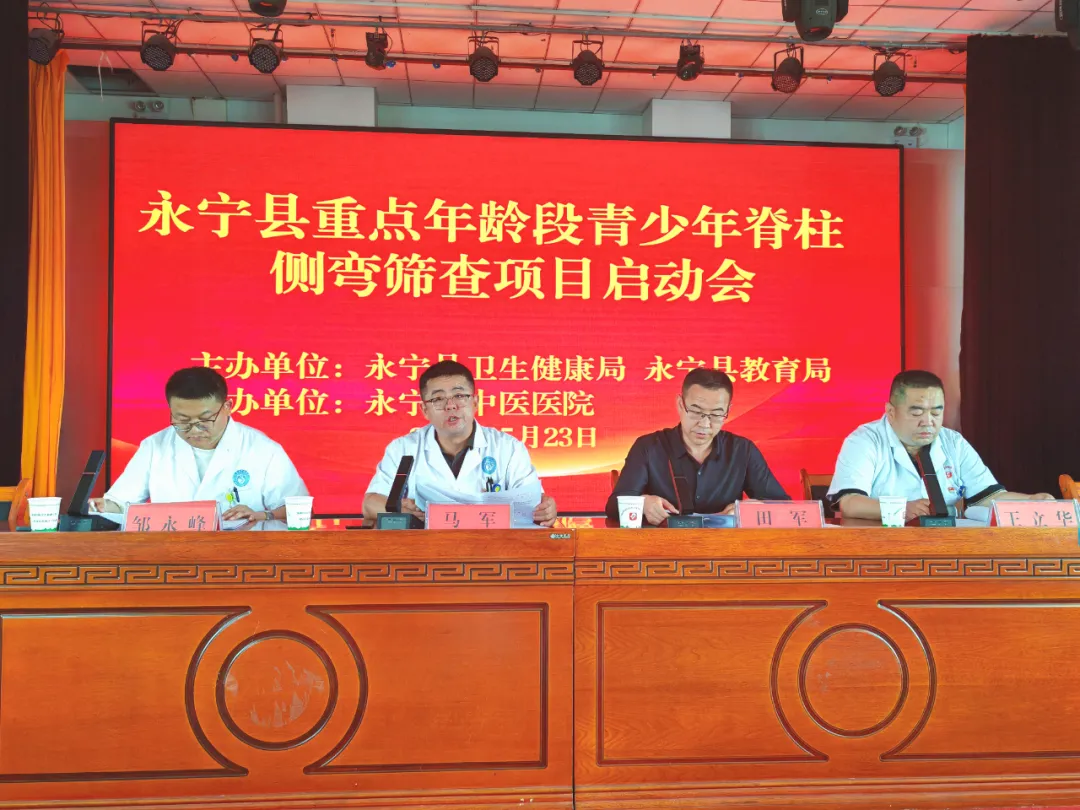 为深入贯彻落实习近平总书记关于少年儿童健康成长的系列重要指示批示精神,充分发挥中医药特色优势,全面落实自治区2025年民生实事“开展重点年龄段青少年脊柱侧弯筛查”项目要求,聚焦健康水平提升行动,切实保障青少年脊柱健康,5月23日,由永宁县卫生健康局、教育局联合举办的2025年永宁县重点年龄段青少年脊柱侧弯筛查项目启动会暨业务培训会在永宁县人民医院县城院区六楼顺利举行。