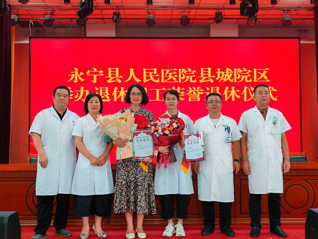 致敬芳华,赓续前行;峥嵘岁月,薪火永传。 感谢吕涛、沈丽萍同志在人生最美好的年华选择与医院携手同行。褪去的是容颜,不变的是初心。衷心祝愿所有退休同志生活多姿多彩,幸福安康!同时,也希望全院职工认真学习、传承老同志们爱岗敬业、认真负责的担当精神,为永宁县人民医院县城院区的美好未来贡献更大力量!