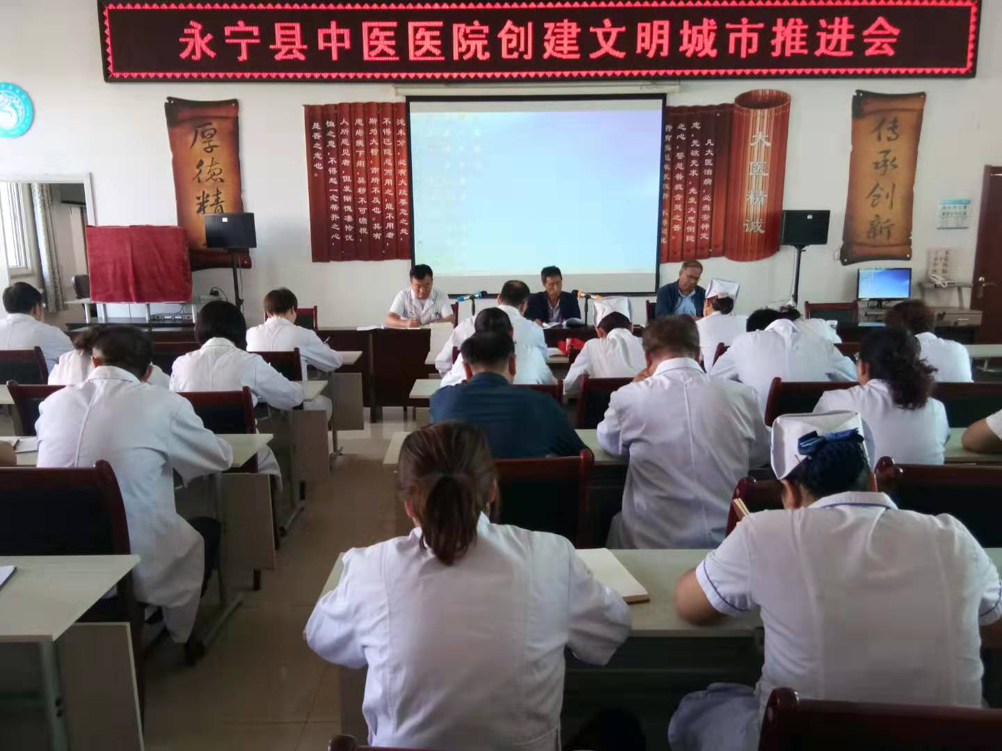 为迎接祖国70大庆,永宁县中医医院各院领导、各科室主任以及护士长,于2019年9月23日在永宁县中医医院五楼会议室,在马生荣书记的主持下开展了中医院创建文明城市推进会工作安排。